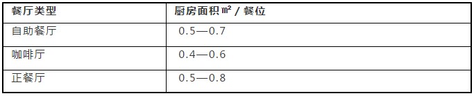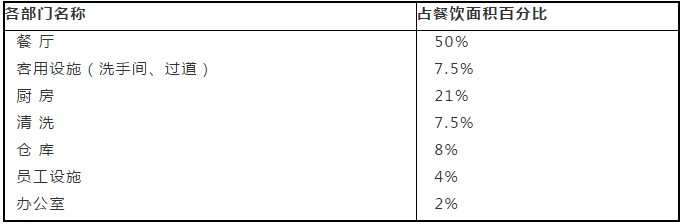 國外廚房面積一般占餐廳面積的40%一60%。根據日本統計,飯店餐廳面積在500㎡以內時,廚房面積是餐廳面積的40%一50%,餐廳面積增大時,廚房面積比例亦逐漸下降 。