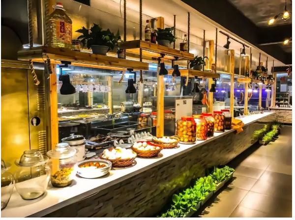 明檔的設計講究“5點”和“4面”。餐廳明檔要有“5點”,即五種不同類型的檔口,此“5點”分別為“動態點”、“強化點”、“突出點”、“靜態點”、“流動點”。“點”上的菜品是餐廳的主打特色菜,這些菜品最好是高毛利的菜品,且能給顧客留下深刻印象,同時是餐廳的核心競爭產品。那么,這“5點”要如何設計呢?