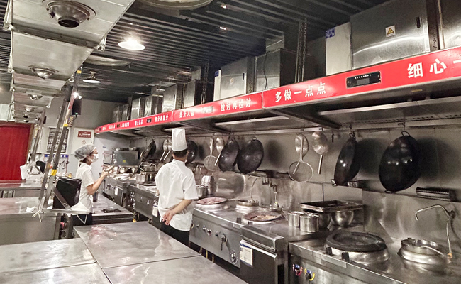 丹棱縣仕清園飯店位于我國大文豪蘇軾的故鄉眉山丹棱縣,是一家經營大型餐飲服務的高端飯店。此飯店廚房工程全部由我公司建設完成。為了能夠滿足客戶的需要,我們前期派專業的項目經理考察了現場,核實了圖紙尺寸和現場廚房空間尺寸,然后,根據廚房的實際情況以及業主對實際經營的需要,并結合廚房的人員流動路線和對菜品加工工藝的要求,為客戶設計了個性化的飯店廚房方案。為了能夠滿足廚房高效的加工食材的需要,我們為客戶配置了節能雙炒雙吊灶和大鍋灶,這類設備不但熱效率高,而且節能;同時為了能夠有效的解決廚房的油煙排放和凈化問題,祛除廚房異味,我們為客戶提供了我公司新一代油煙凈化一體機產品,該產品油煙凈化率在98%,能夠實現目測無煙,除臭除味,輕松解決廚房油煙問題。由于我公司廚房工程經驗豐富,熟悉各類廚房對設備工程的要求,周全考慮廚房的客觀情況,并且科學的規劃配置設備方案,讓我們的廚房方案很快就得到了客戶的認可,并且快速的完成了工程項目。客戶要驗收完項目之后,對我們的工作非常滿意,贊不絕口,并且表示下次如何還需要廚房工程項目,會再次考慮我們的項目。