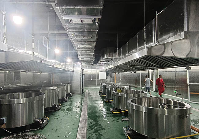 大型食品廠廚房設備項目是公司今年完成的大型廚房設備項目工程。此工程項目和其他項目相比有所不同,主要是為了食品加工廠解決食物的加工制作問題以及食品生產車間的油煙排放以及凈化問題。這個案例由于是大量食品的加工車間,因此該項目和其他的商用廚房項目是不同的。由于該項目使用了大量的蒸煮爐,因此,排放和凈化車間排放的油煙就成了一個大問題。為了幫助客戶解決這個問題,我們派專業人員現場調查了解情況,并且根據客戶的需求,專門設計了排煙系統以及排煙系統的電源控制,讓各個部分能夠獨立工作的同時又可以方便控制開關,提高車間工作效率。正是由于我們的努力和專業,很好的解決了客戶的問題,項目也很快投入了使用。