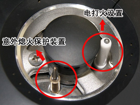 b、當燃具火焰熄滅,導致熱電偶產生的電流下降,使電磁閥的鐵芯和銜鐵松脫,自動切斷燃氣通路,防止燃氣外泄。