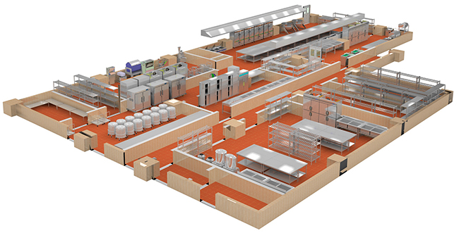 1、廚房的整個食品加工區域(洗消間、粗細加工間、烹調間等工作區)結構專業設計時考慮做降板300mm以上的處理。