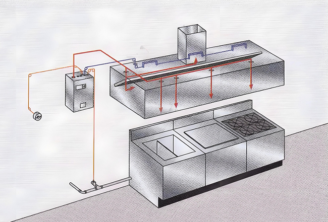 排煙系統(tǒng):排煙設(shè)備如油煙凈化器、風(fēng)機(jī)等,在滅火過程中和滅火后,能夠迅速排除廚房?jī)?nèi)的煙霧和有害氣體,保持空氣流通。