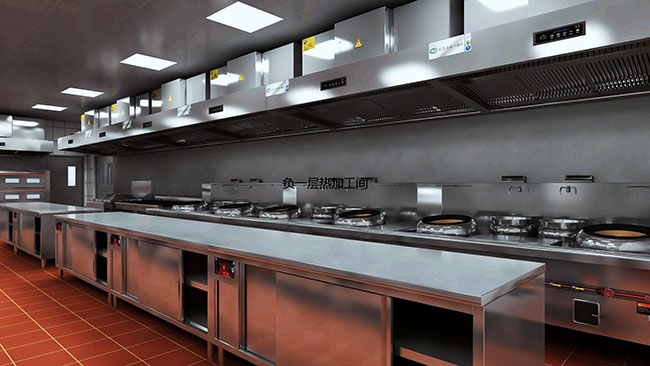 熱菜加工間從菜肴類別上可分為炒菜、燉菜、海鮮、煲湯、燒臘等,從工序上分為兩個加工區: