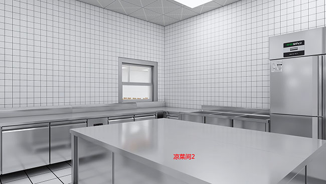 該工作區域負責涼菜熟制、改刀裝盤、水果盤的切制裝配及出品等工作。為保證成品質量、防止涼菜切配受污染變質,應保持室內高度潔凈和低溫環境。檔次較高的飯店,涼菜間設洗手更衣的預進間和出餐口。為保證涼菜間的低溫潔凈,涼菜的熟制應該在另設的加工間內進行。涼菜熟制需要炒灶、湯灶等爐具;涼菜改刀裝盤還需要配置工作臺、保鮮工作臺、拉門工作臺、冰柜、貨架、貨柜、碗柜、水果保鮮柜、制冰機、碎冰機等。