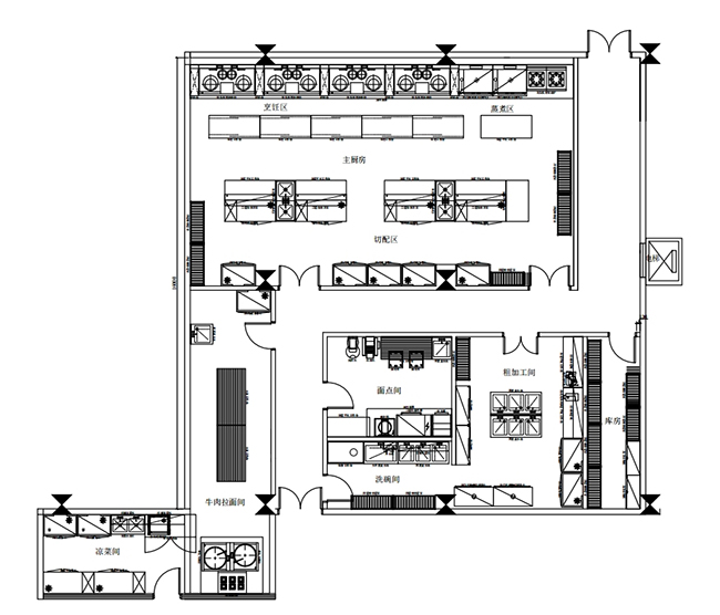 3.餐品經營特點決定廚房面積,如面食快餐、火鍋、烤肉等特色食品經營,都要根據自己的計劃,確定廚房的面積。