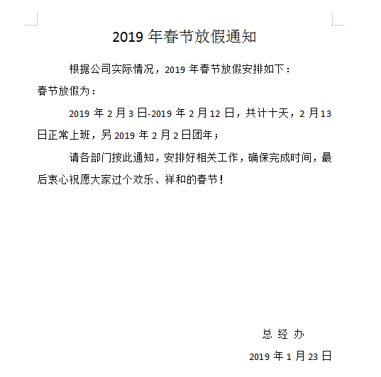 由于2019年春節將至,優佰特廚房設備公司春節放假安排已出,在放假期間公司暫停工作,節后將繼續竭誠為大家服務,請各位需要訂貨的客戶做好時間安排。