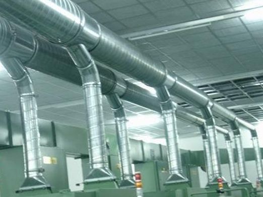 根據比壓損和水力半徑的計算,管道的形狀各有不同特點。同樣的截面積,圓管最省材料,壓力損失最小,受力均勻不易變形,也不容易產生噪音。其次是方管,再次就是矩形管。但是,圓管管件制作比較復雜,銜接、密封、安裝不如方管方便,還受到安裝空間凈高的限制,占用室內凈高比方管大。同樣的截面積矩形管越扁,用板材越多,壓力損失越大,四角產生的渦流加大了壓力損失,也是產生噪聲的原因。矩形管單面面積比較大,受到壓力容易變形,產生聲響,需要加厚板材和采用加強工藝。因此,在空間允許的情況下,盡量使截面兩邊相等。