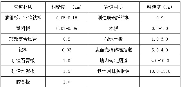 不同材質的管道內壁的絕對粗糙度系數見下表、